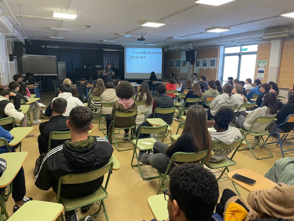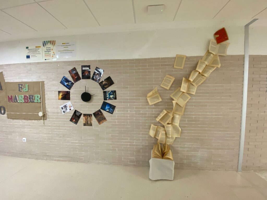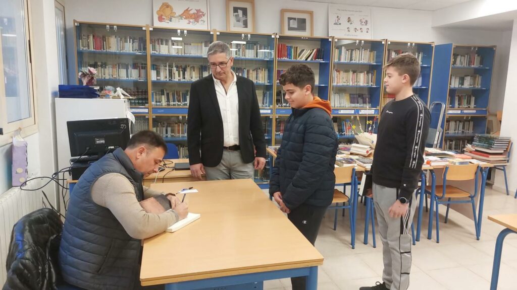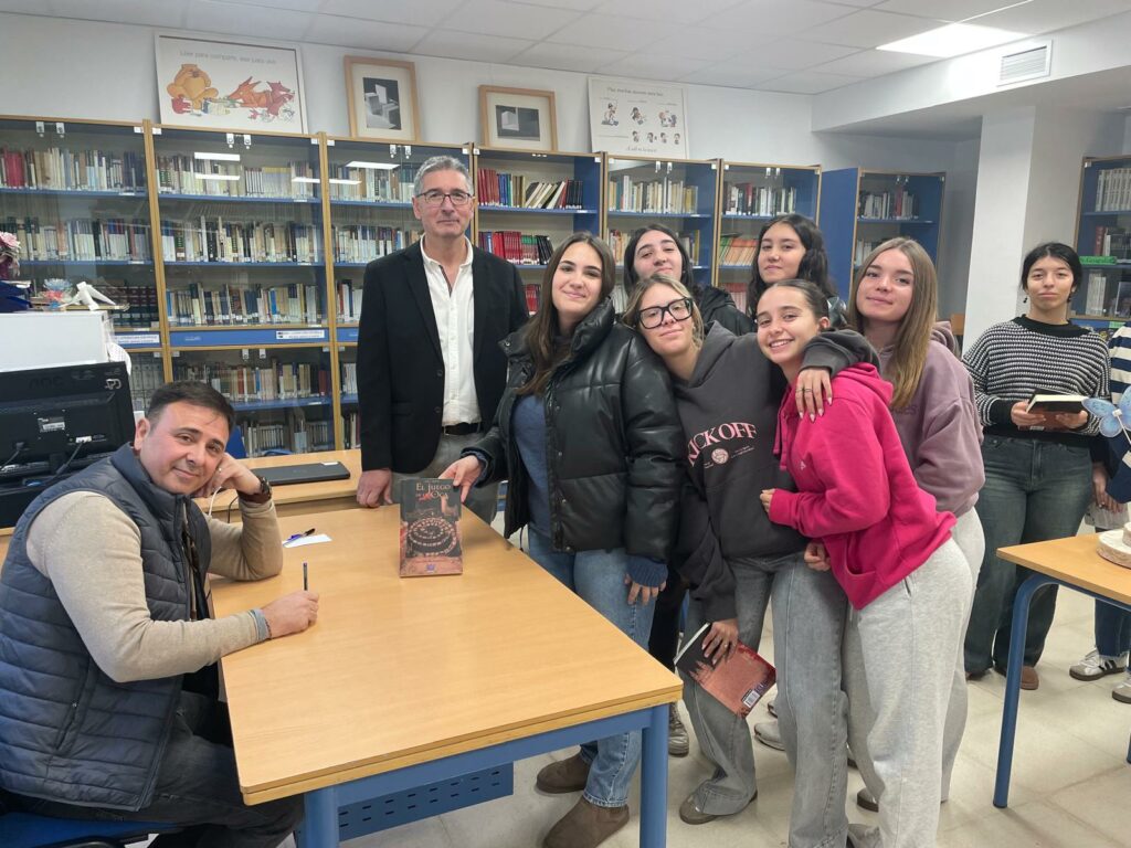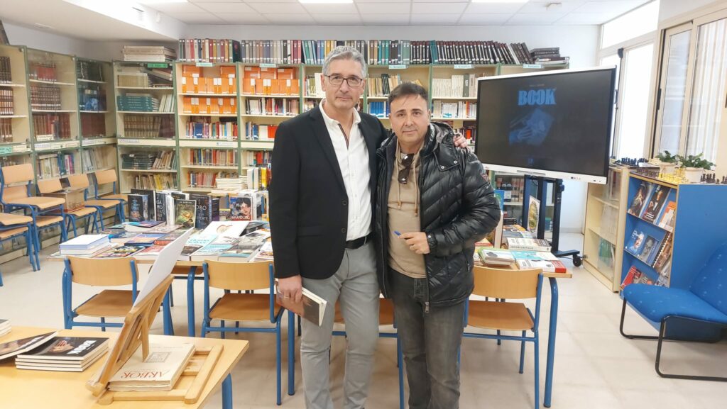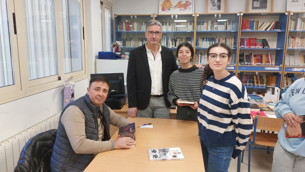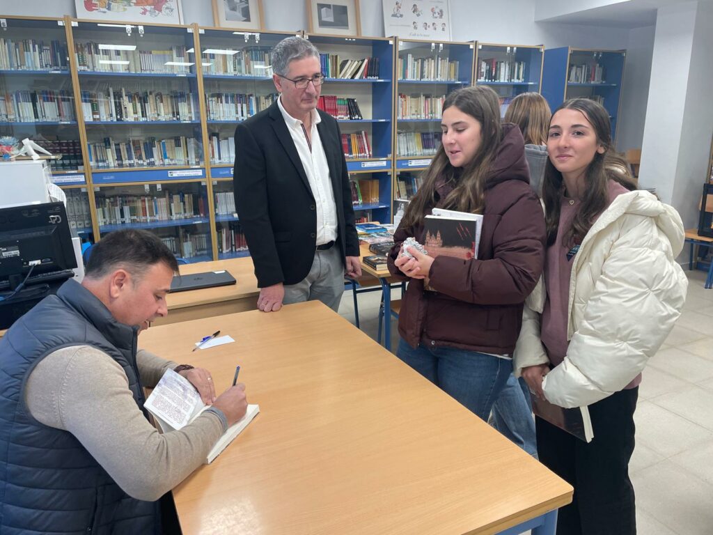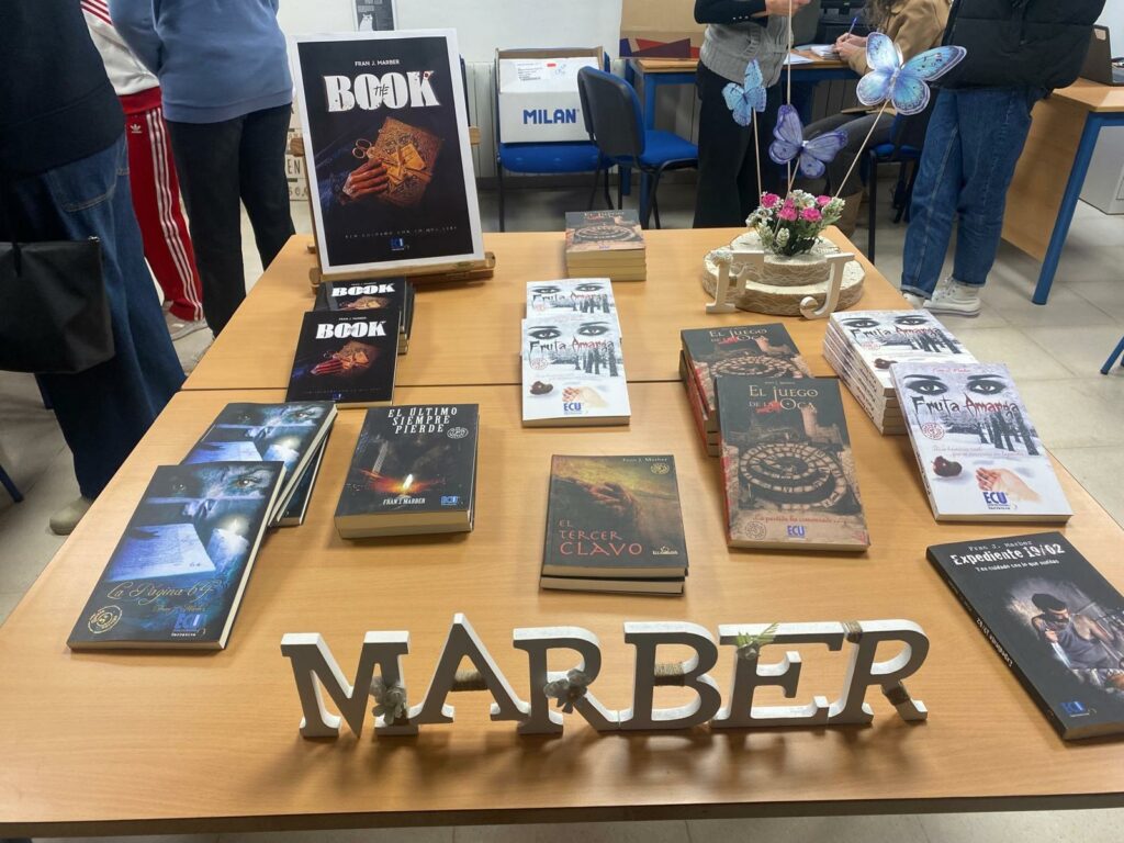 Fran J. Marber ha comentado, a modo de taller, todo el proceso creativo y de investigación que lleva en el desarrollo de su obra literaria y artística de una forma amena para los alumnos y después ha firmado varios libros a los alumnos en la biblioteca del instituto.