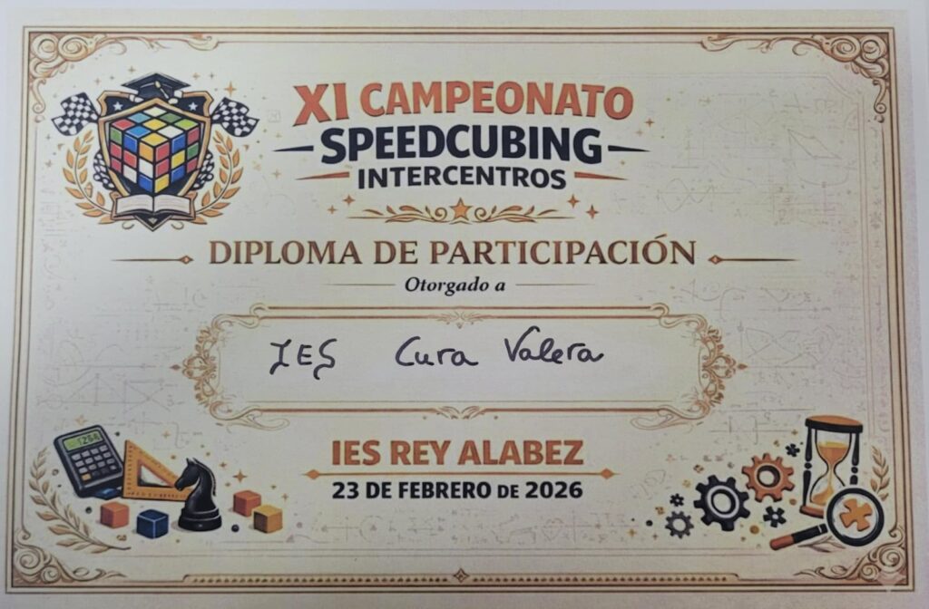 El IES Cura Valera ha participado en el XI Concurso Speedcubing Intercentros, celebrado hoy en el IES Rey Alabez de Mojácar.