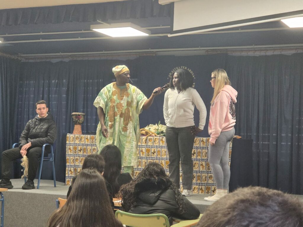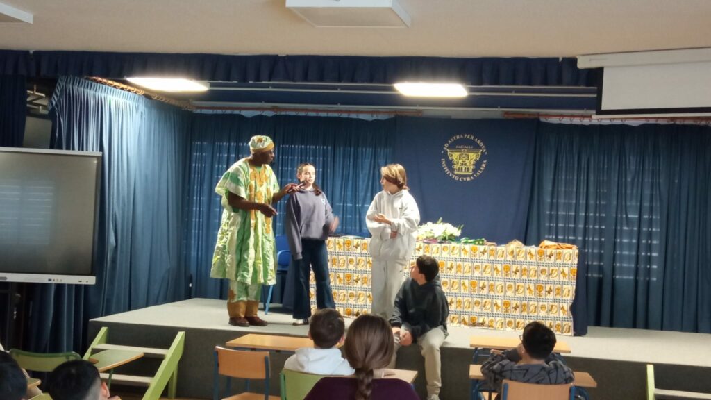 Nuestro punto de partida nos lleva directamente al corazón de África con una sesión especial de cuentacuentos. Gracias a Samuel Mountoumnjou , cuentacuentos de relatos tradicionales africanos, nuestro alumnado de 1º ESO y 4º ESO ha podido disfrutar de historias llenas de sabiduría, humor y magia. Los alumnos/as han participado activamente, descubriendo la riqueza de la tradición oral africana y viviendo la lengua francesa desde una perspectiva más cercana.