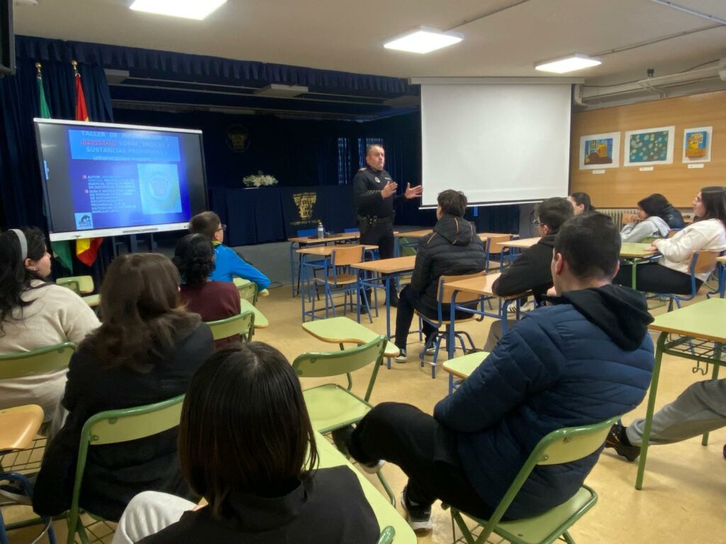 Esta semana hemos contado en el instituto con la visita de la Policía Local, a través de Jero Asensio, quien ha impartido unos talleres de prevención del consumo de drogas y alcohol.