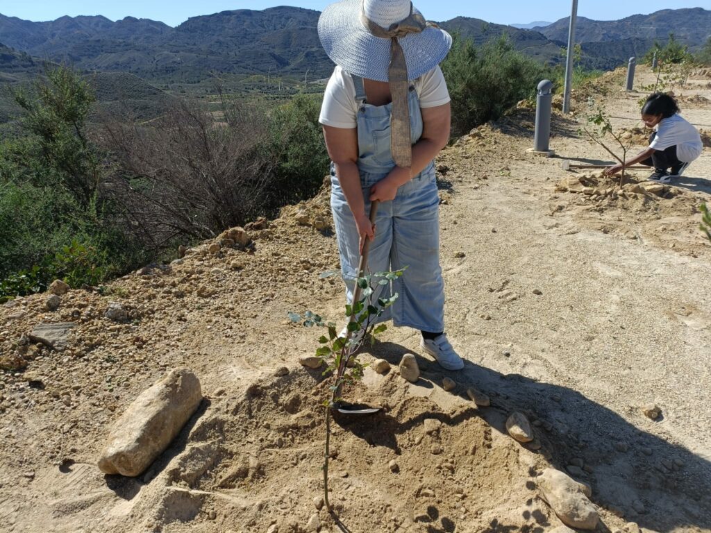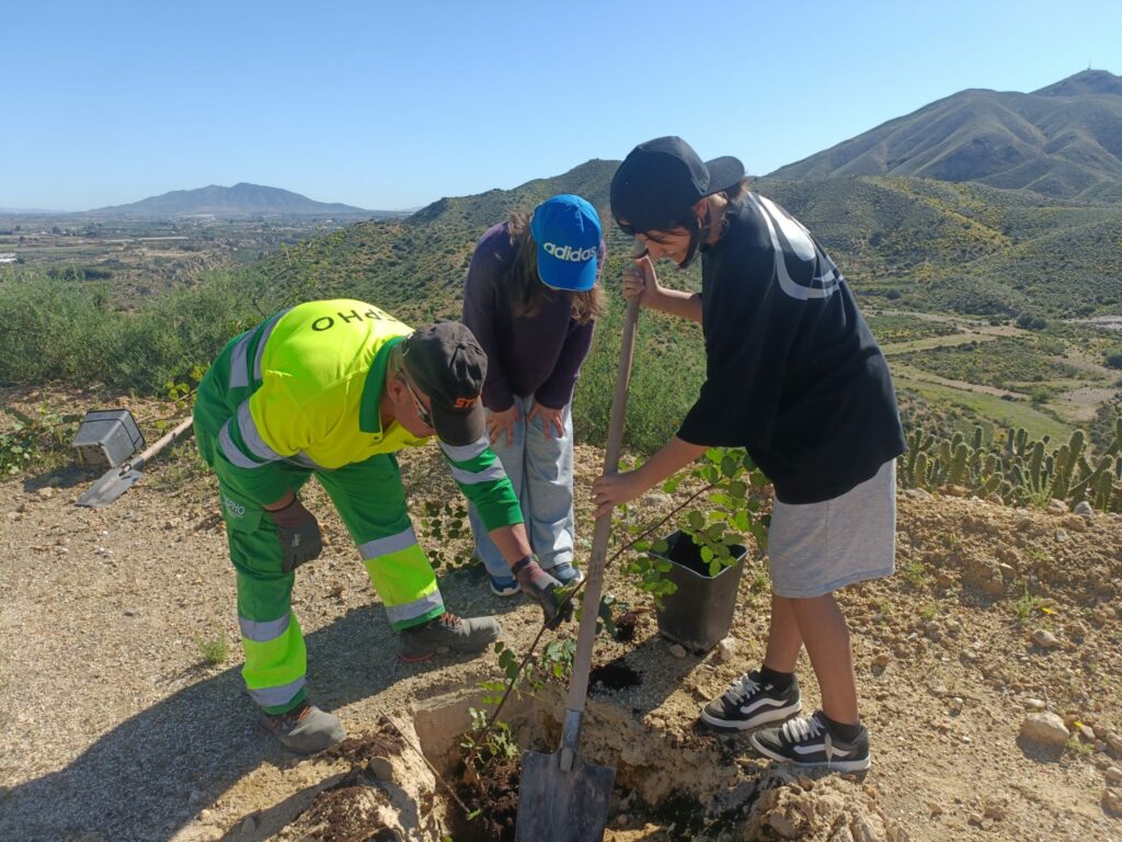 La jornada ha tenido muy presente la importancia de luchar contra el cambio climático, a través de la reforestación de ésta especie arbórea, correspondiente al área biogeográfica mediterránea y, plenamente adaptada a la zona. Siendo muy resiliente a las condiciones adversas climatológicas, así como al déficit hídrico. Durante la actividad, el alumnado ha aprendido a identificar las plantas aromáticas, arbustivas y riparias de la zona. Actividad medioambiental que, ha sido posible gracias al donante de ésta especie arbórea: D. Salvador Valero Herrera, fundador de Naturinda, en La Mojonera ( Almería ), al transportista D. Alfonso García Haro, D. José Sánchez de Ecologistas en Acción del Levante – Almanzora, Ayuntamiento de Huércal-Overa con D. Blas M. Sánchez Jiménez, D. Fernando Ortega, D. Pedro Carrasco, Dª Juani Egea ( Concejales del Ayuntamiento: de Patrimonio, Obras y Servicios, Agua, Medio Ambiente, Juventud, Cultura y Turismo, Dª Natalia Ortega perteneciente a ésta última concejalía y, Dª María Nieves Martínez Raya ( Comité de Expertos de la D.T. de Almería, Consejería de Desarrollo Educativo y Formación Profesional ).